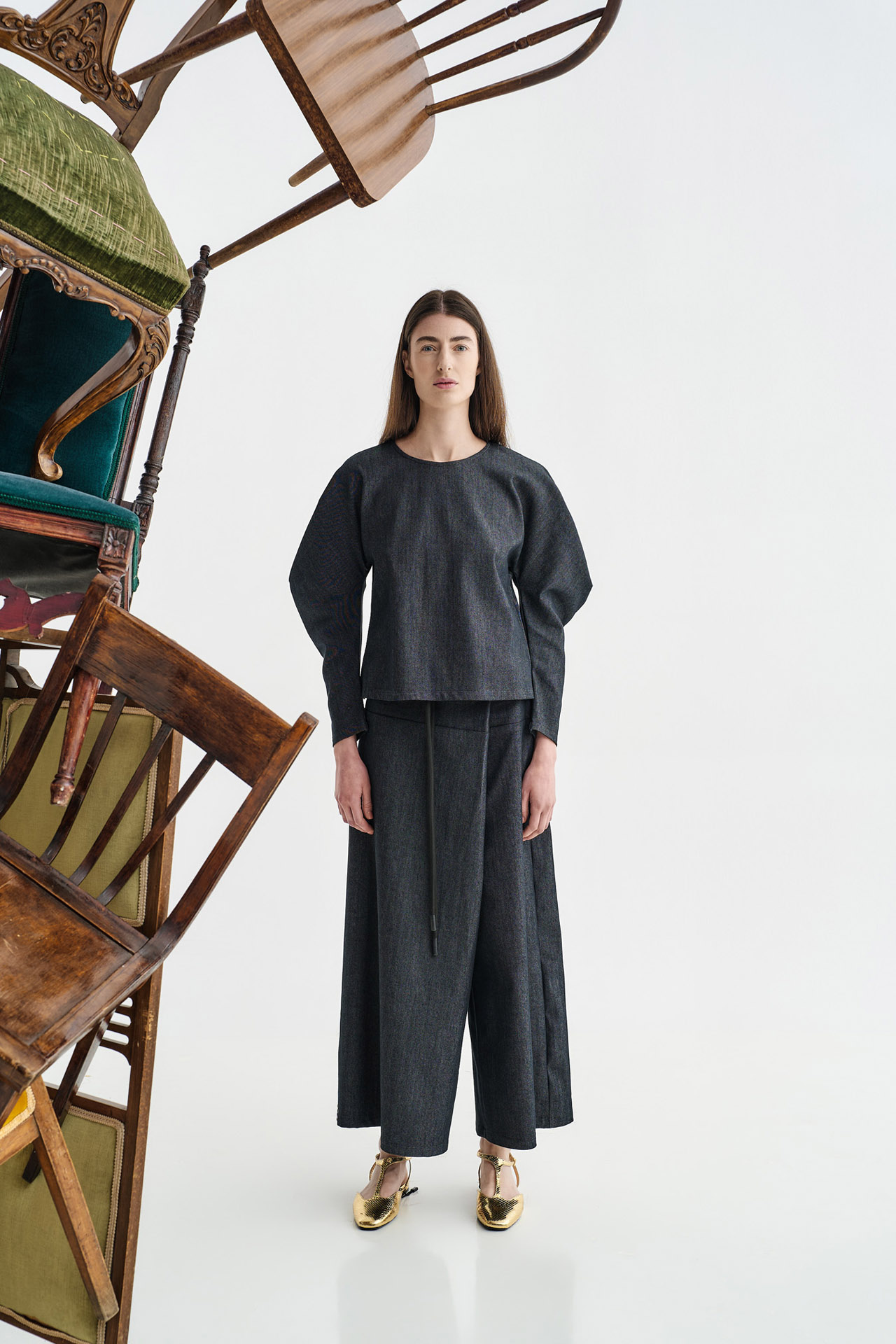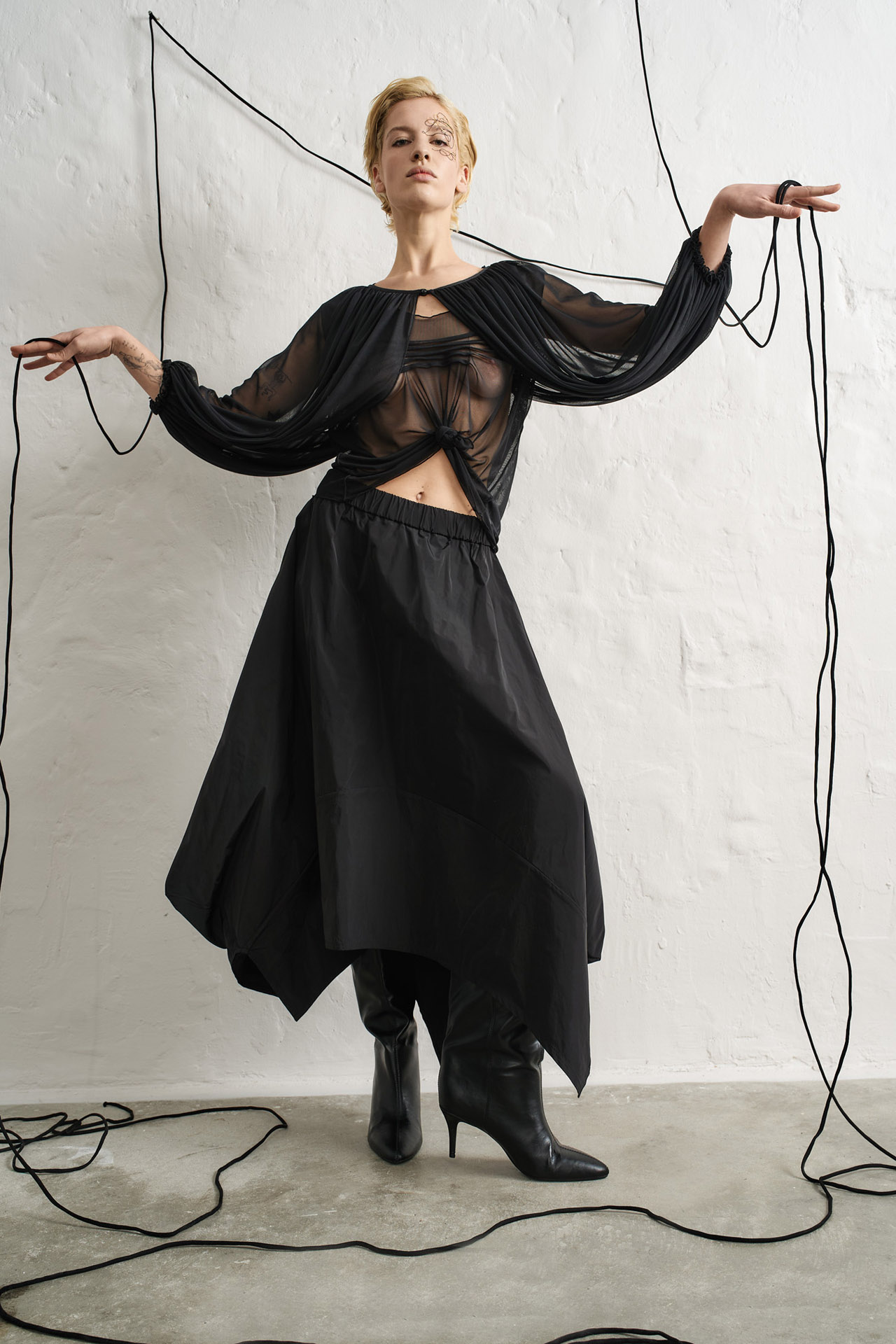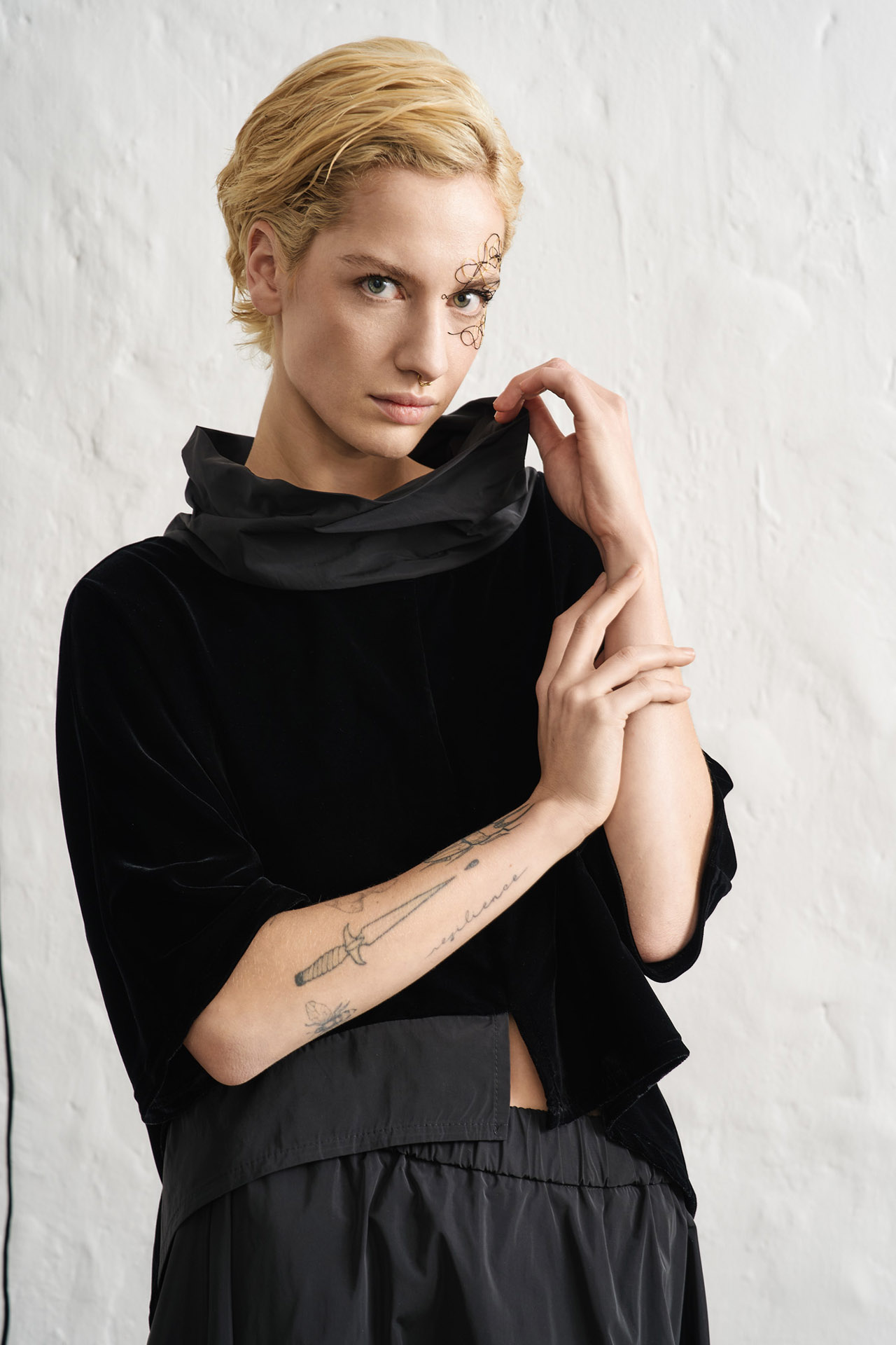HAMSA Ασύμμετρο Crop Top από Βελούδο & Memory Ύφασμα