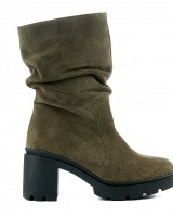 Δερμάτινο Μποτάκι Λαδί – Καστόρι με Σούρες