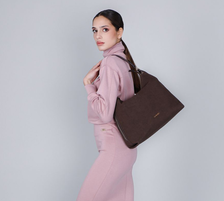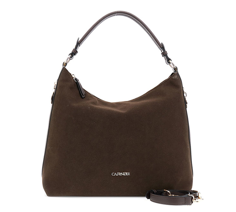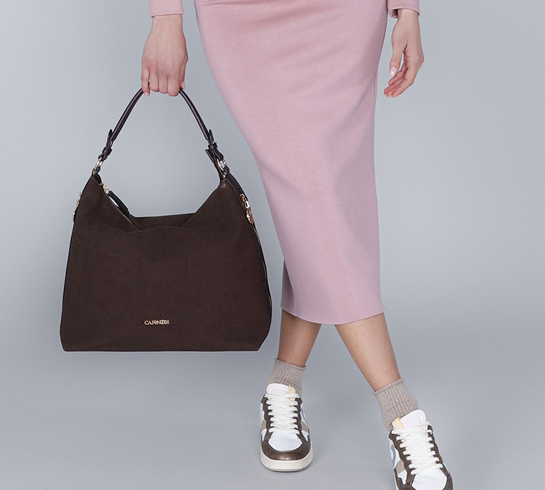 Απαλή τσάντα με εφέ σουέτ, σκούρο καφέ